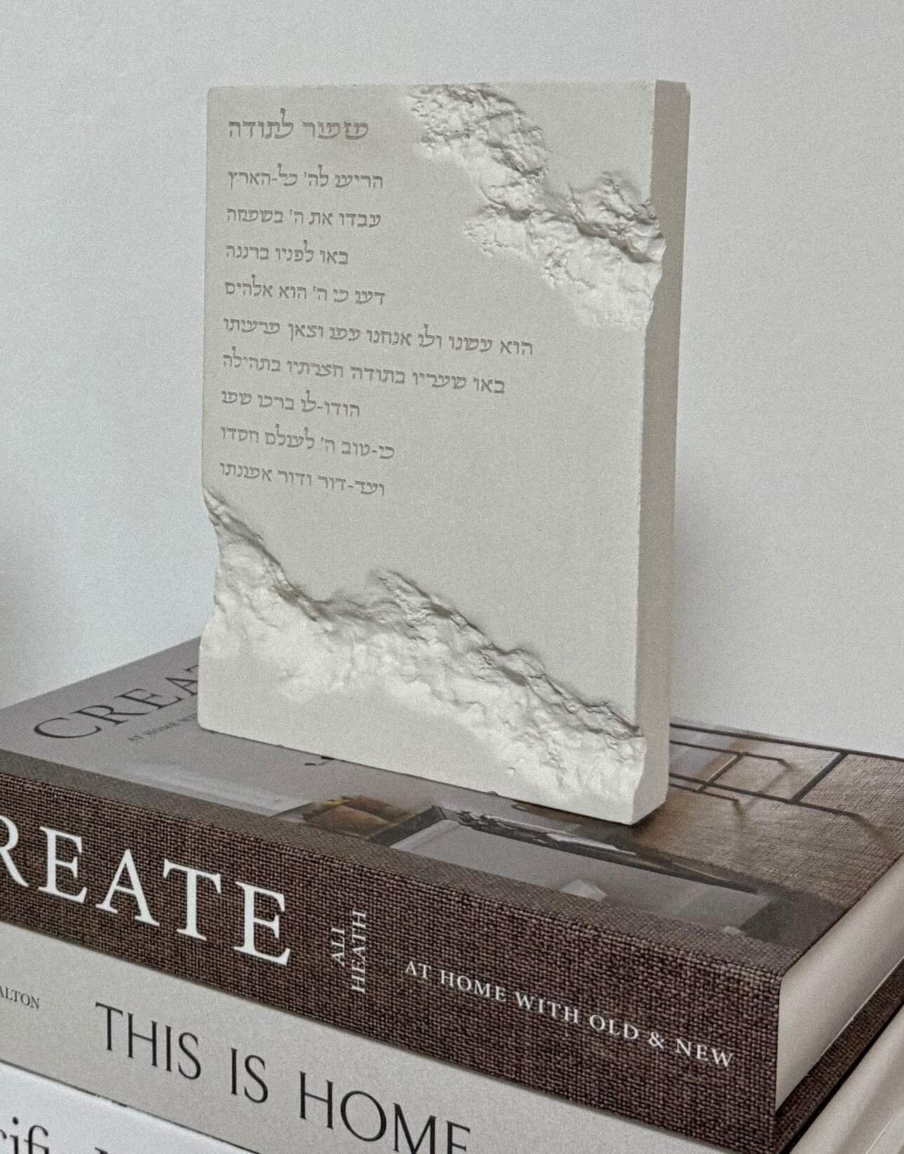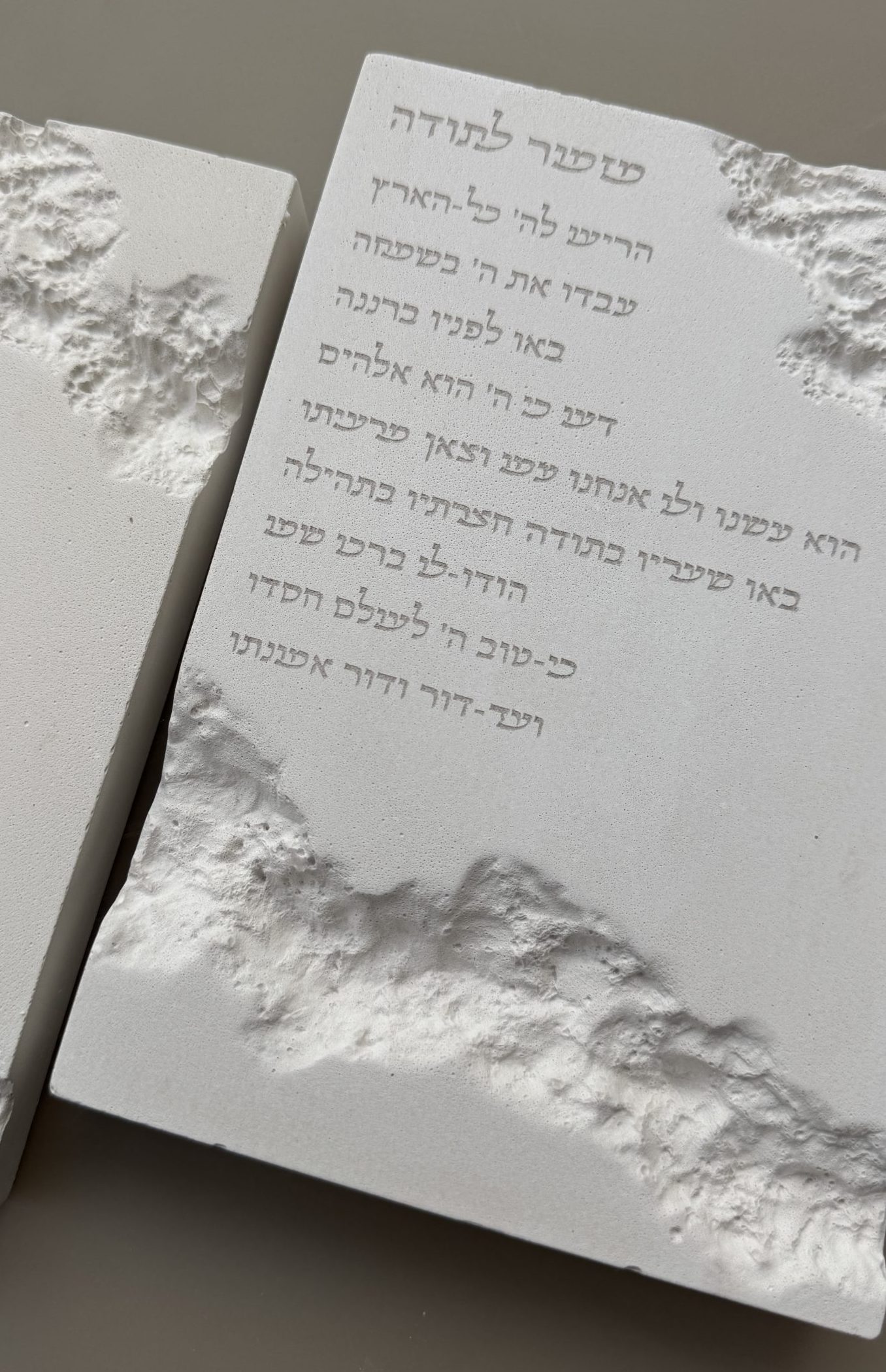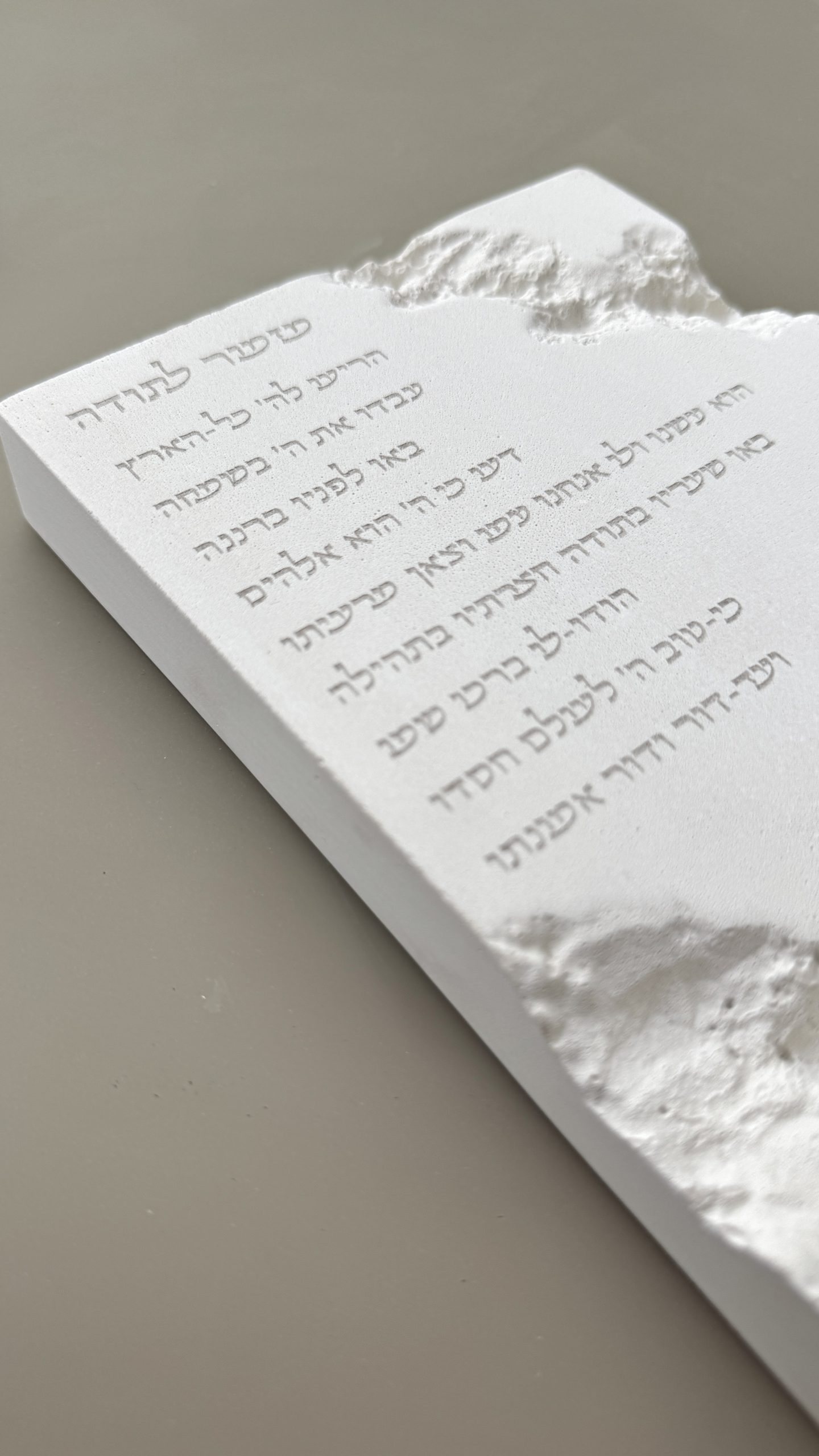 בלוק בטון – עשוי בטון פולימרי וחריטת ״מזמור לתודה״