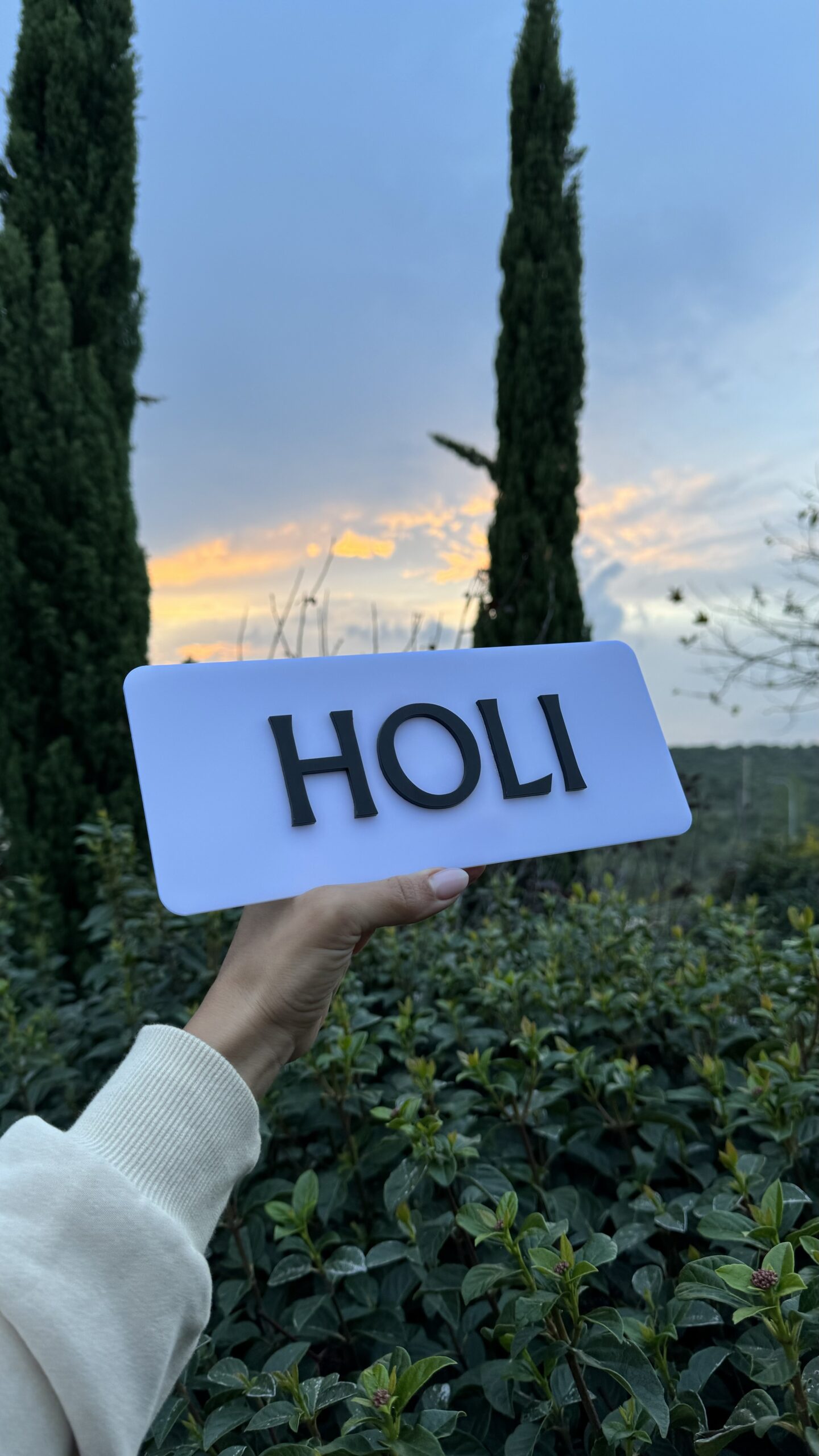 שלט לבן בשילוב אותיות בולטות בשחור
